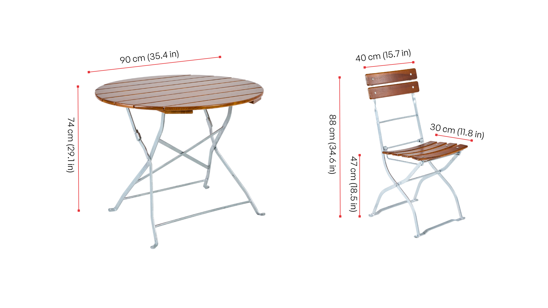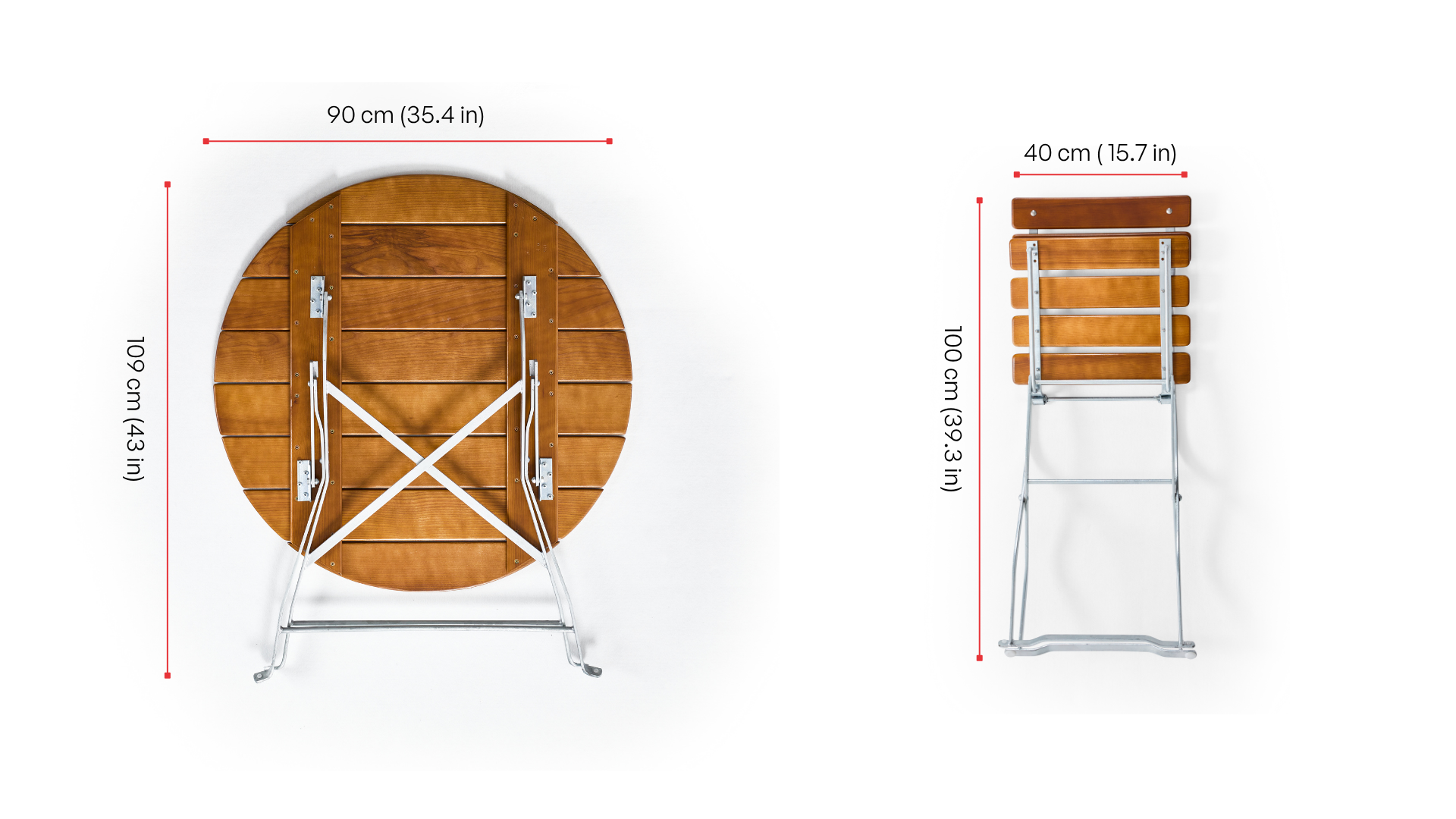 Wie die Brezn zur Weißwurst gehören unsere Biergartenmöbel zur urigen Gemütlichkeit eines Biergartens. Durch ihre robuste Konstruktion stehen sie stabil, auf festem wie auf weichem Untergrund – auf Asphalt, Schotter oder Kies. Und auch Regen brauchen die Biergartenmöbel nicht zu fürchten: Die witterungsbeständige Lasur schützt das Holz zuverlässig vor Nässe. Über die Winterpause lassen sich der runde Biertisch sowie die Stühle zusammenklappen und platzsparend verstauen – oder im Innenraum aufstellen: Dank der angebrachten Bodenschoner hinterlassen die Biergartenmöbel keine Kratzer auf empfindlichen Böden.