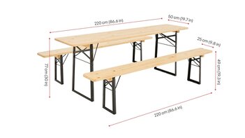 | Bierbank Maße | 220x25x49 cm |