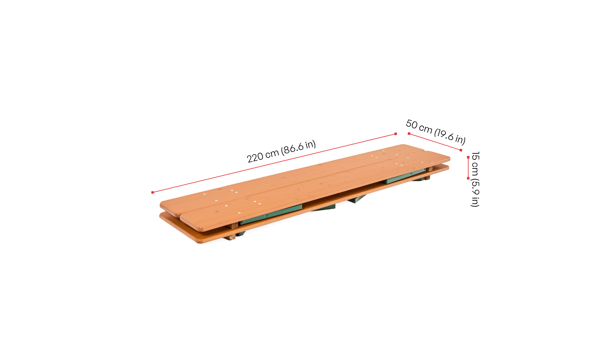| Bierbank Maße | 220x25x49 cm |