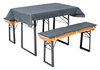Zwei Bankpolster, eine Tischdecke, mehr Gemütlichkeit! Die Bierbankauflage 108 cm ist maßgeschneidert für unsere kurze Garnitur Shorty und passt auf beide verfügbaren Modelle (mit oder ohne Rückenlehne). Die 3 cm dicken Polster des Sets sorgen für die Extraportion Bequemlichkeit und können durch seitliche Gummizüge an den Bierbänken befestigt werden, so dass nichts verrutscht oder herunterfällt. Ein weiteres Plus: Der anthrazitfarbene Stoff der Polster sowie der Tischdecke ist besonders pflegeleicht. Bestehend aus 51 % Polyester und 49 % Baumwolle kann die Auflage ganz einfach bei 30°C gewaschen werden.